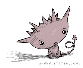 Out in the desolate fields of the urutoo, a lonely sound is heard followed by a whimper. A small wide headed creature looks about, appearing lost and afraid. Its head bears a multitude of horns and it has a clubbed tail.
