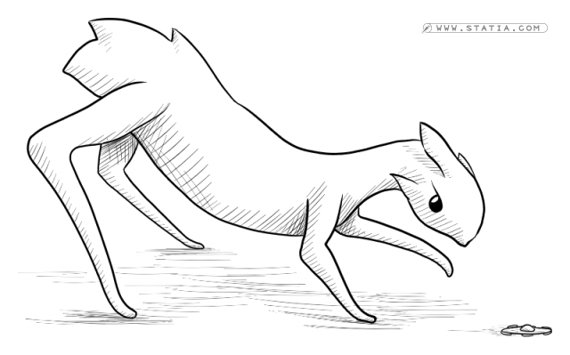 A crexiten sniffs at a peculiar marker on the ground. It is round and metal with seals all around. The centre periodically blinks with a certain organic frequency.