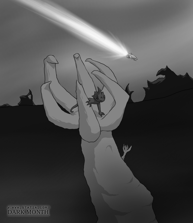 "Aaaaaah!" hissed the thing, suddenly all too near. Sharp talons lashed at the base of the tree, catching Chester's skeletal paw and painfully dragging him out into the open.