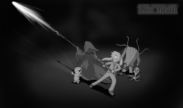 Then one moment out from the canvas of starry lights came a tear in that black sheet, through which came the ballooned thief. Across the expanse it plunged from its hole and stole the disc from her weakened hands. She fought with the thing briefly, but the surprise of it caught her off guard, so lonely she was for another living thing.