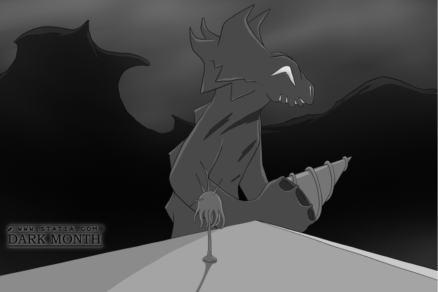 Then the ground opened up beneath me. A calm ocean of night streamed out of that horrible maw, filled with grasping protrusions. I held onto the edge, but I lost one of them to that abyss. Down it tumbled, out of sight.