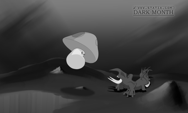 Mushroom landed on the cliff's edge mere metres away from the thing. There was no opportunity to stand rigidly quiet, the tremor of his landing alerted the beast. It bit at the air, the very space it closed its jaws upon seemed to stretch and blacken. Mushroom considered his options.